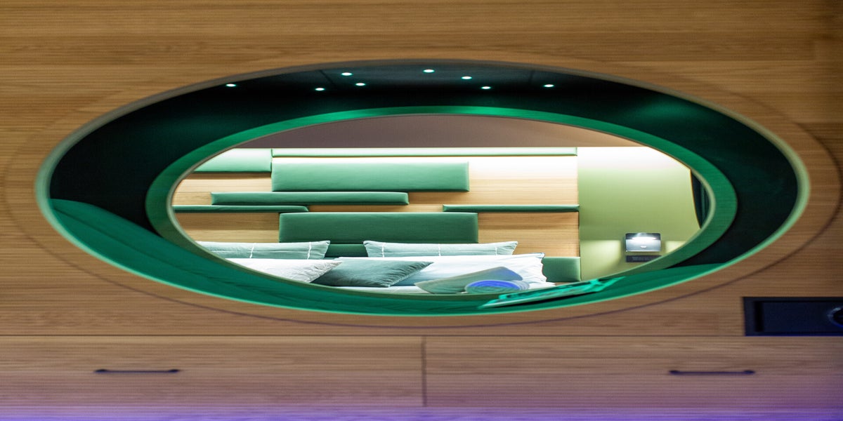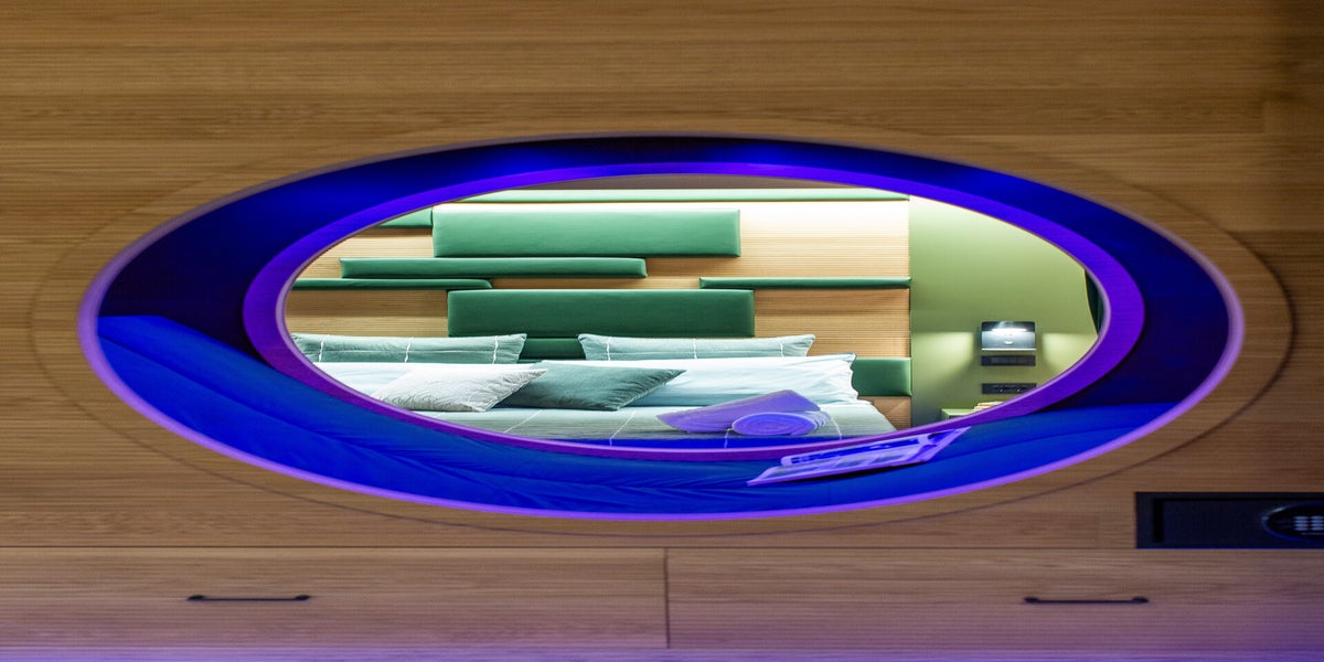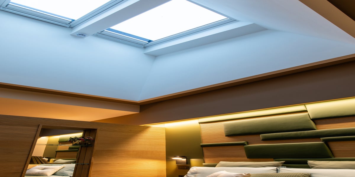 Vista panoramica diretta sul cielo, grazie al lucernario, per potersi addormentare ammirando le stelle.