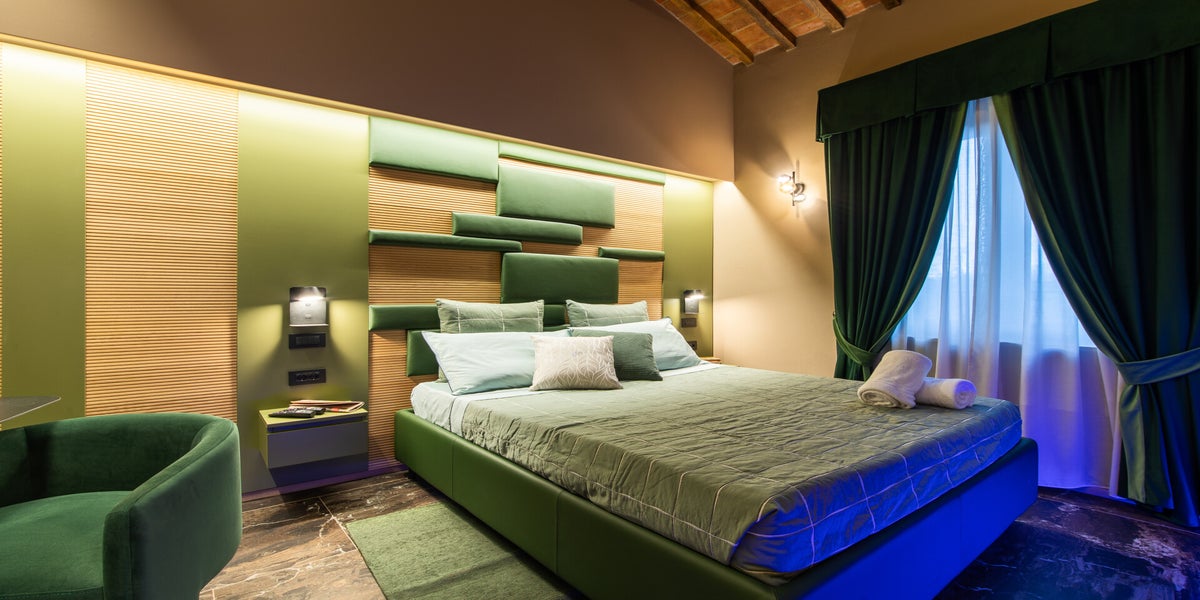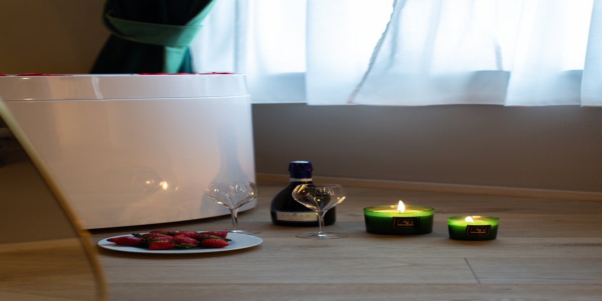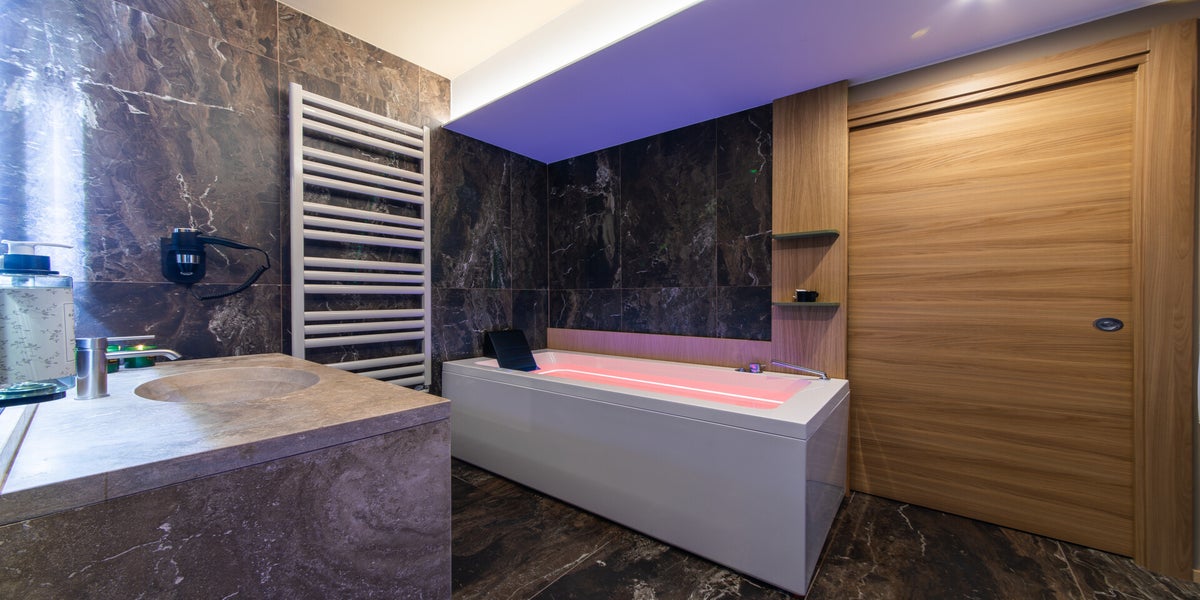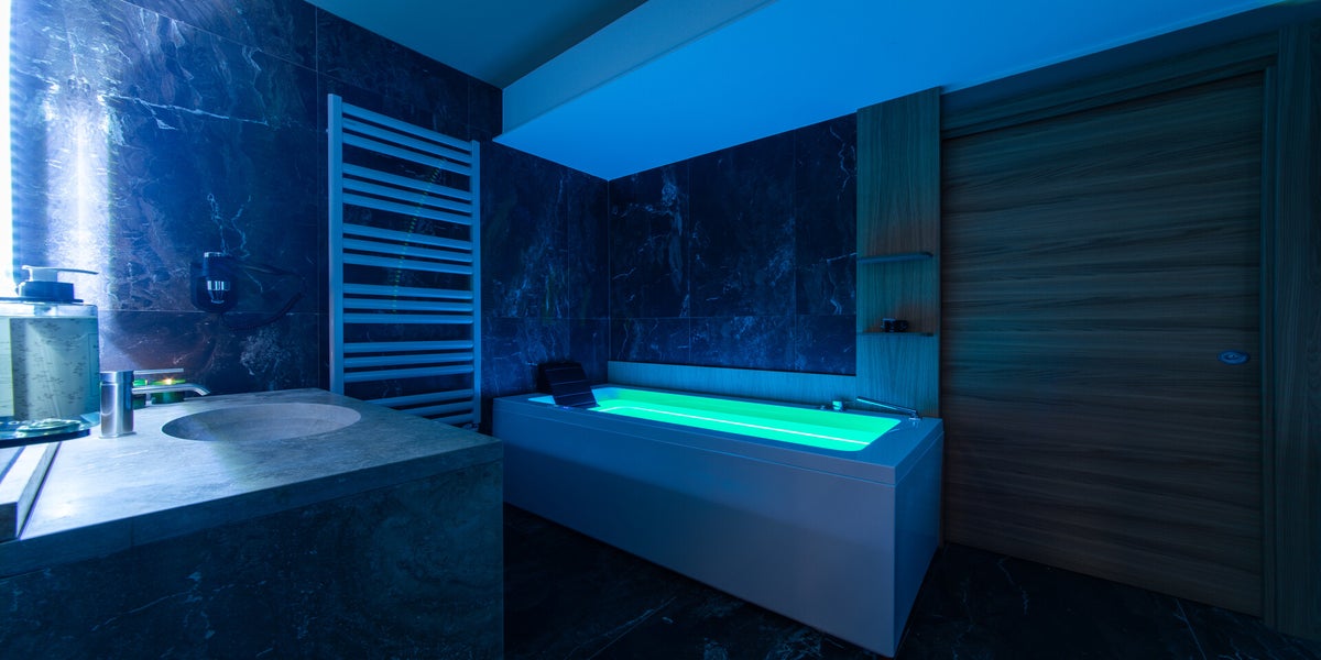 Camera raccolta ed intima, dotata di vasca idromassaggio con cromoterapia.